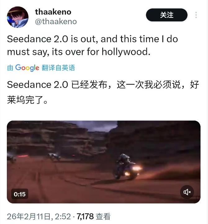 多位美国导演在社交平台X(原推特)分享了自己使用Seedance 2.0制作短片的感受,并发出了“好莱坞要完蛋了”的感叹。