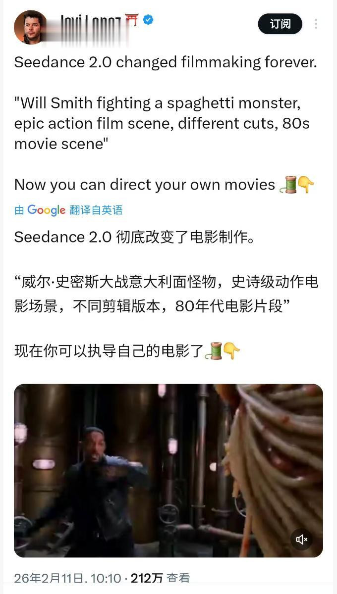 值得注意的是,2月12日,知名导演贾樟柯昨晚发文称:Seedance 2.0确实厉害,我准备用它做个短片。